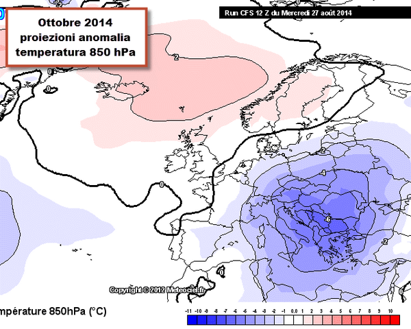 توقعات الشذوذ في درجات الحرارة بطقة 850 مليبار لشهر آكتوبر القادم بإذن الله مشابه كثيرا لاكتوبر عام 1974 م