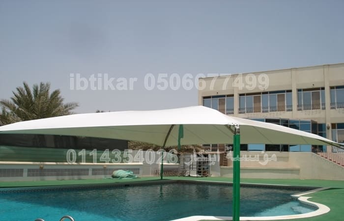 - تغطية مظلات مسابح خاصة بالمسابح ويكون لها تصاميم مختلفة ويختلف حجمها على حسب