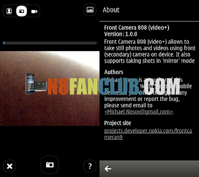 التطبيق يسمح لالتقاط الصور ومقاطع الفيديو باستخدام الأمامي (الثانوي) الكاميرا على الجهاز. كما أنها تدعم أخذ لقطات في وضع 'مرآة'. التمتع به! يتطلب التطبيق البرنامج "ميزة حزمة نوكيا بيل 2"، أو ما يفوقها للعمل المناسب. مفيدة جدا تطبيق الكاميرا الأمامية لأولئك الذين حصلوا على الكاميرا الأمامية تعطيل التحديث بعد بيل الثابتة FP2. العمل تماما على 808 نوكيا، 701، 603 و 700.
